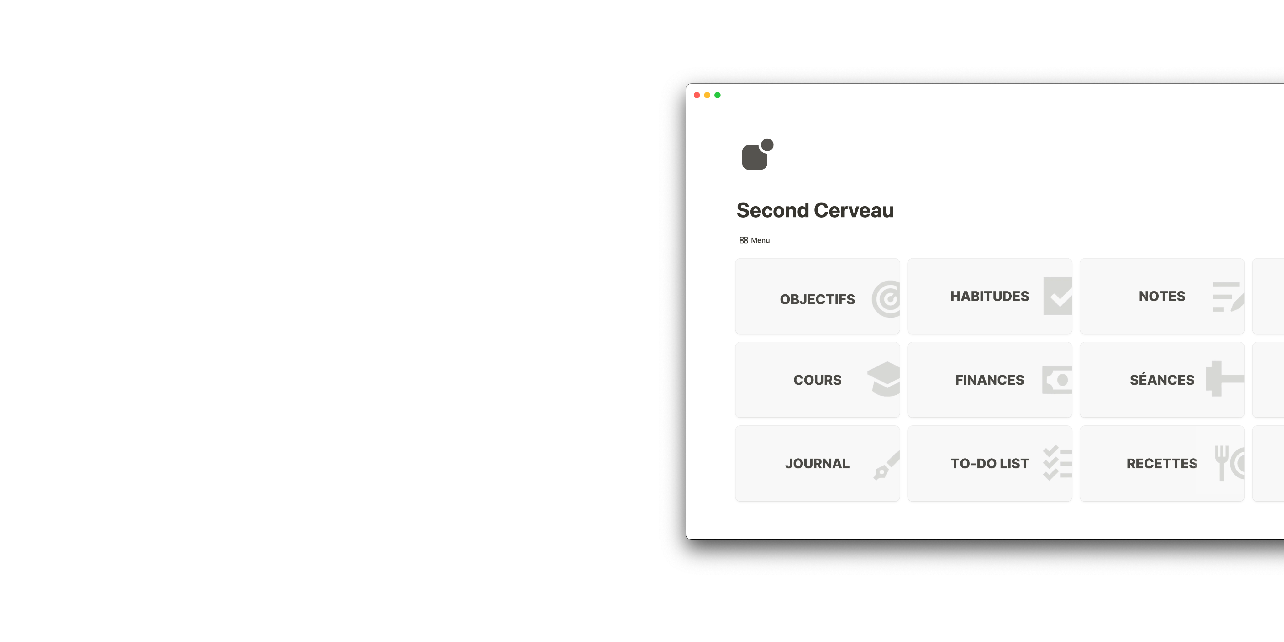 The Second Brain runs on Notion, a platform available on computers, tablets and smartphones, with automatic synchronization between your devices.